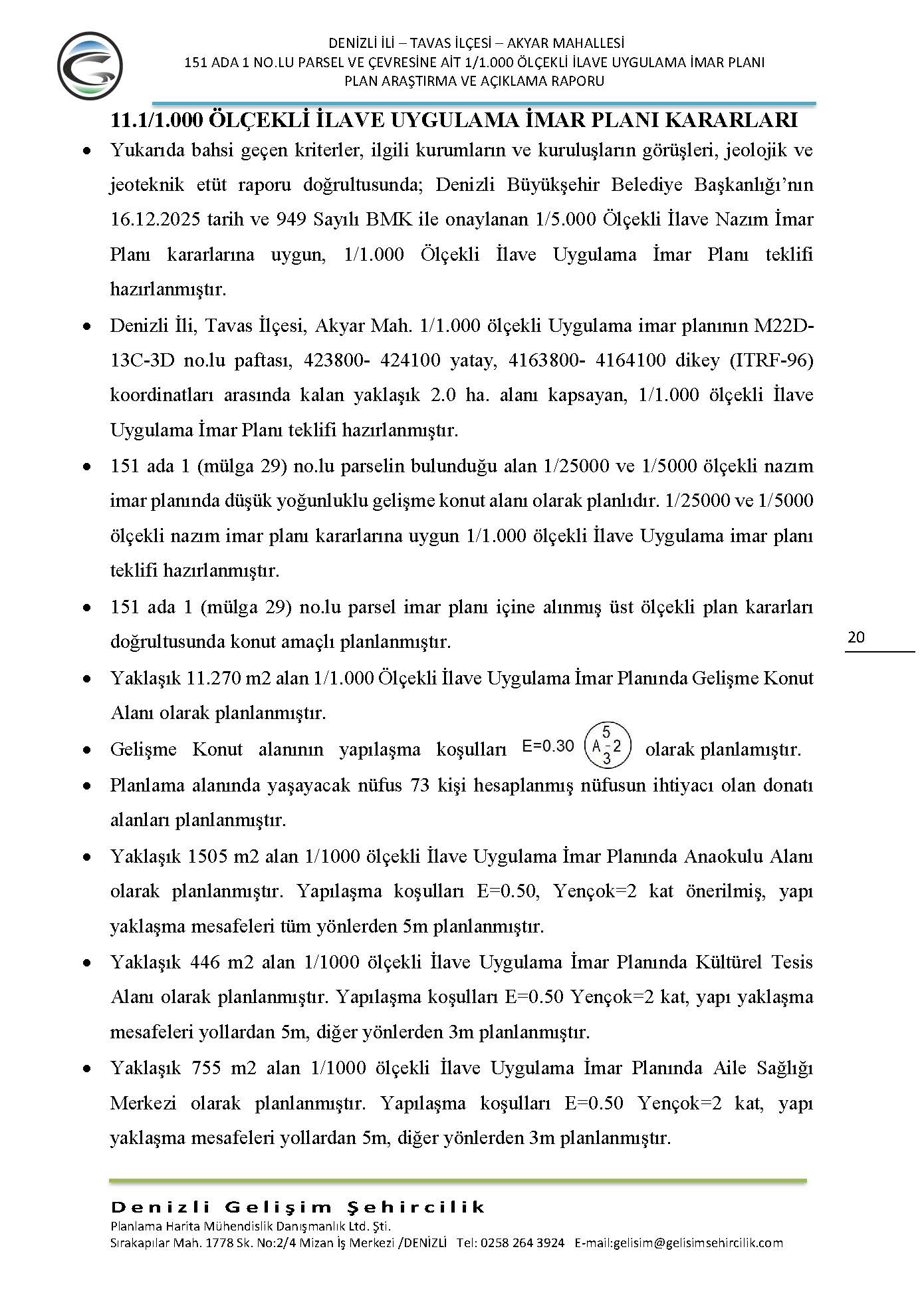 / AKYAR MAHALLESİ 151 ADA 1 PARSEL İLE İLGİLİ UİP-201122110 PLAN İŞLEM NUMARALI 1/1.000 ÖLÇEKLİ İLAVE UYGULAMA İMAR PLANI ASKI İLANI