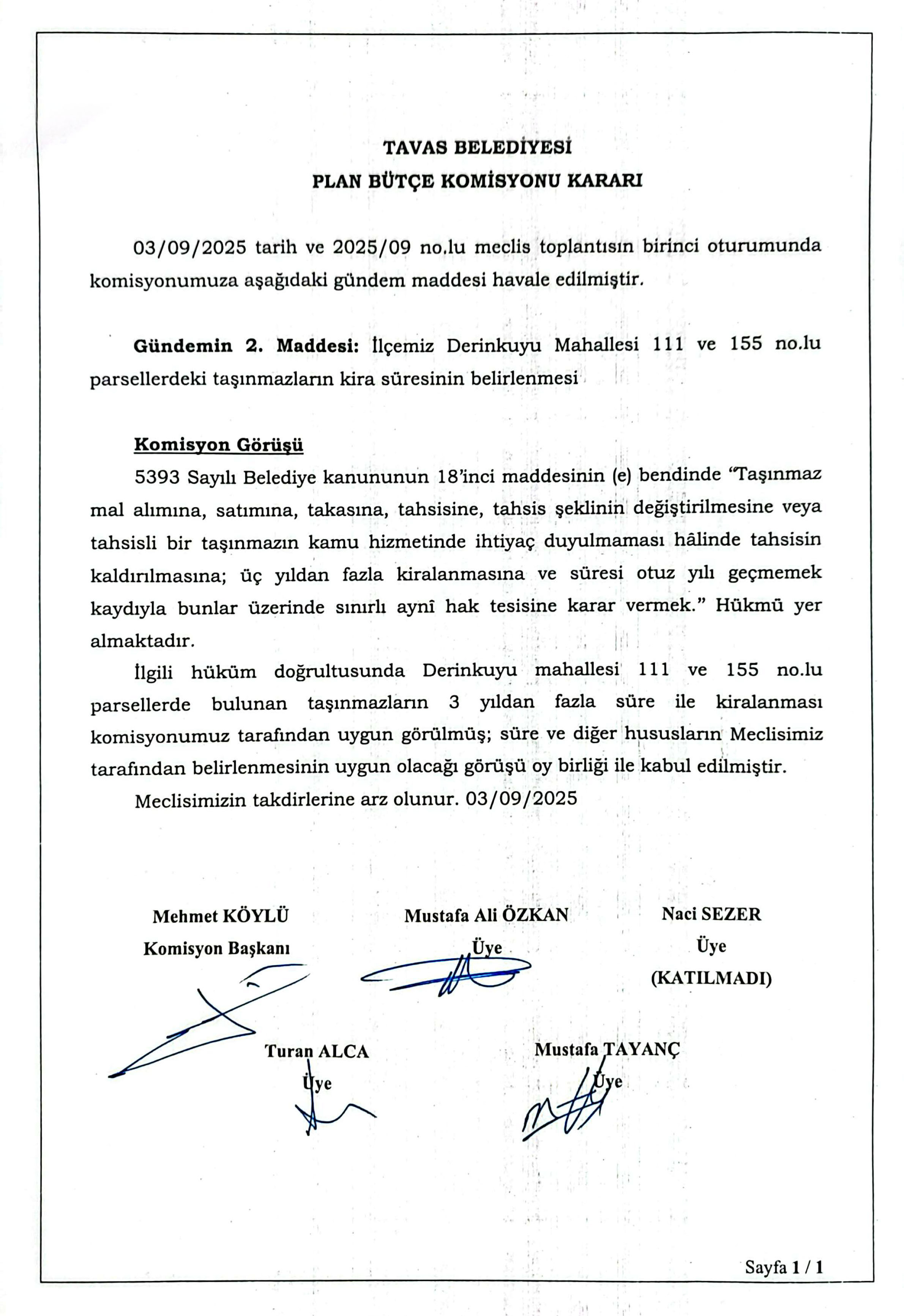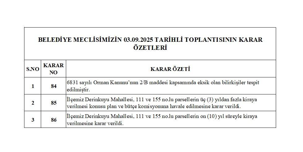BELEDİYE MECLİSİMİZİN 03.09.2025 TARİHLİ 2025-8 NOLU TOPLANTISININ KARAR ÖZETLERİ VE İMAR İLE PLAN VE BÜTÇE KOMİSYON RAPORU