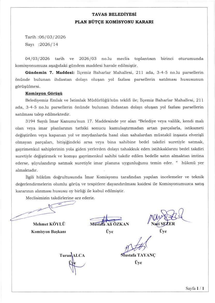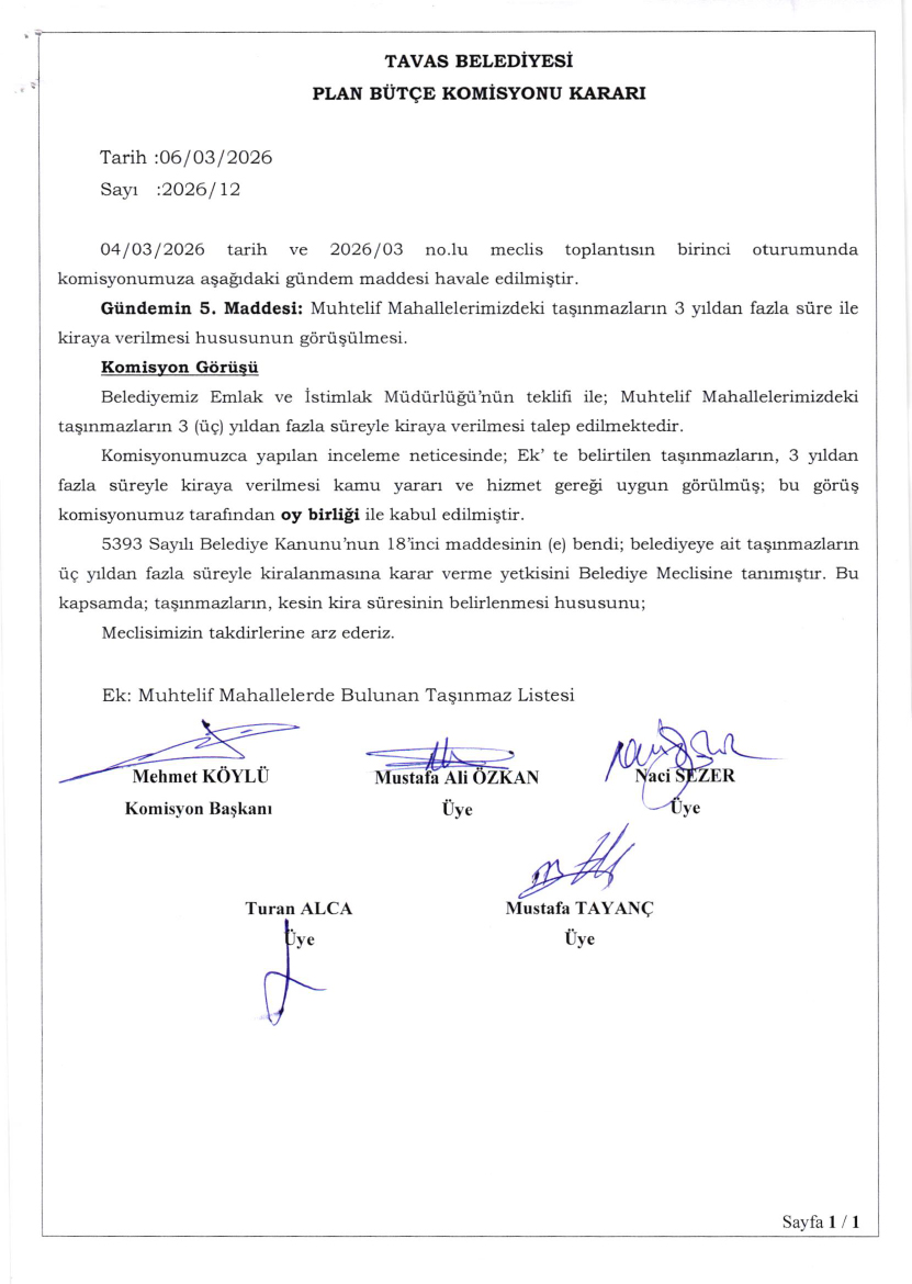 / BELEDİYE MECLİSİMİZİN 04.03.2026-06.03.2026 TARİHLİ 2026-03 NOLU TOPLANTISININ KARAR ÖZETLERİ VE İMAR İLE PLAN VE BÜTÇE KOMİSYON RAPORU