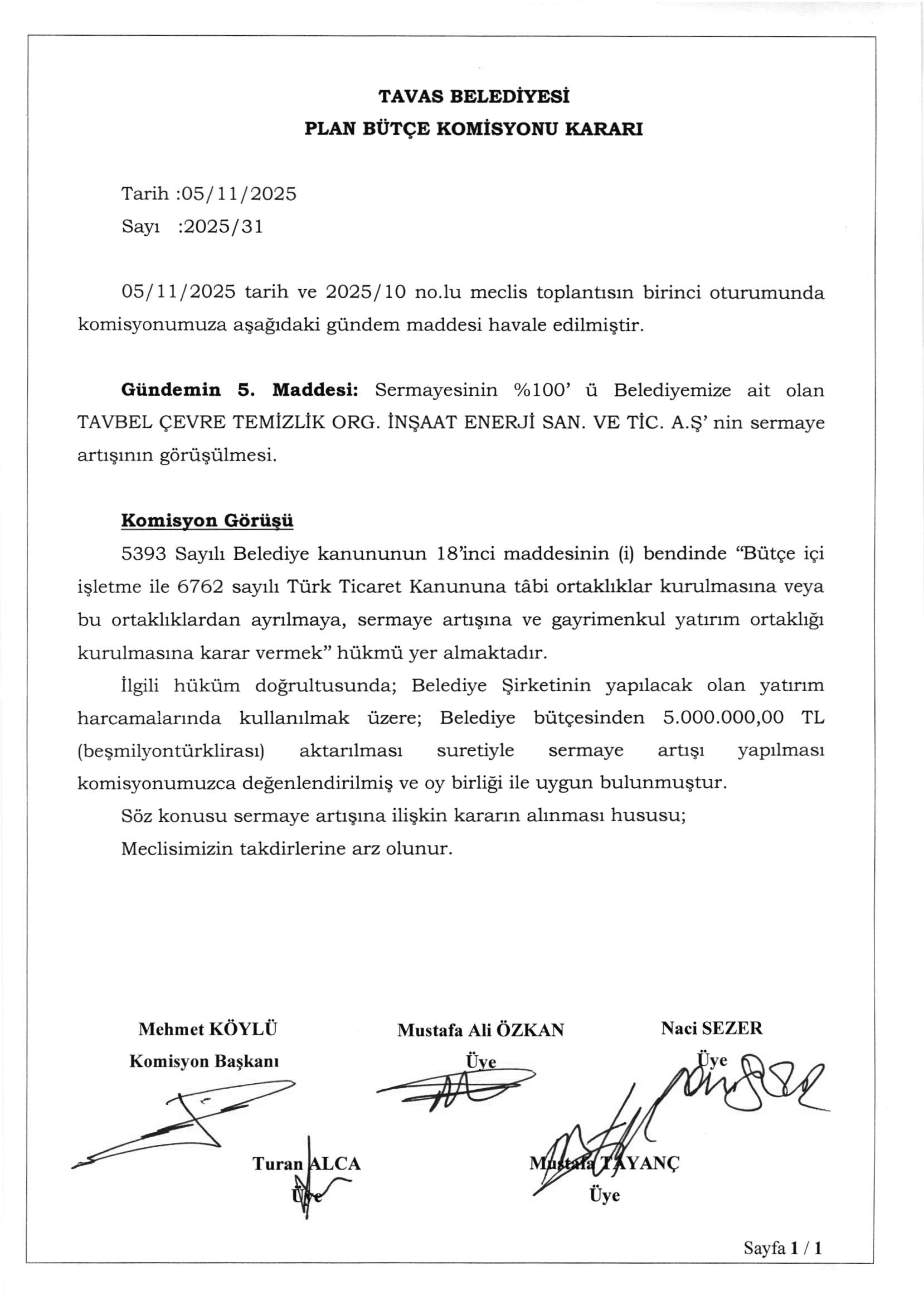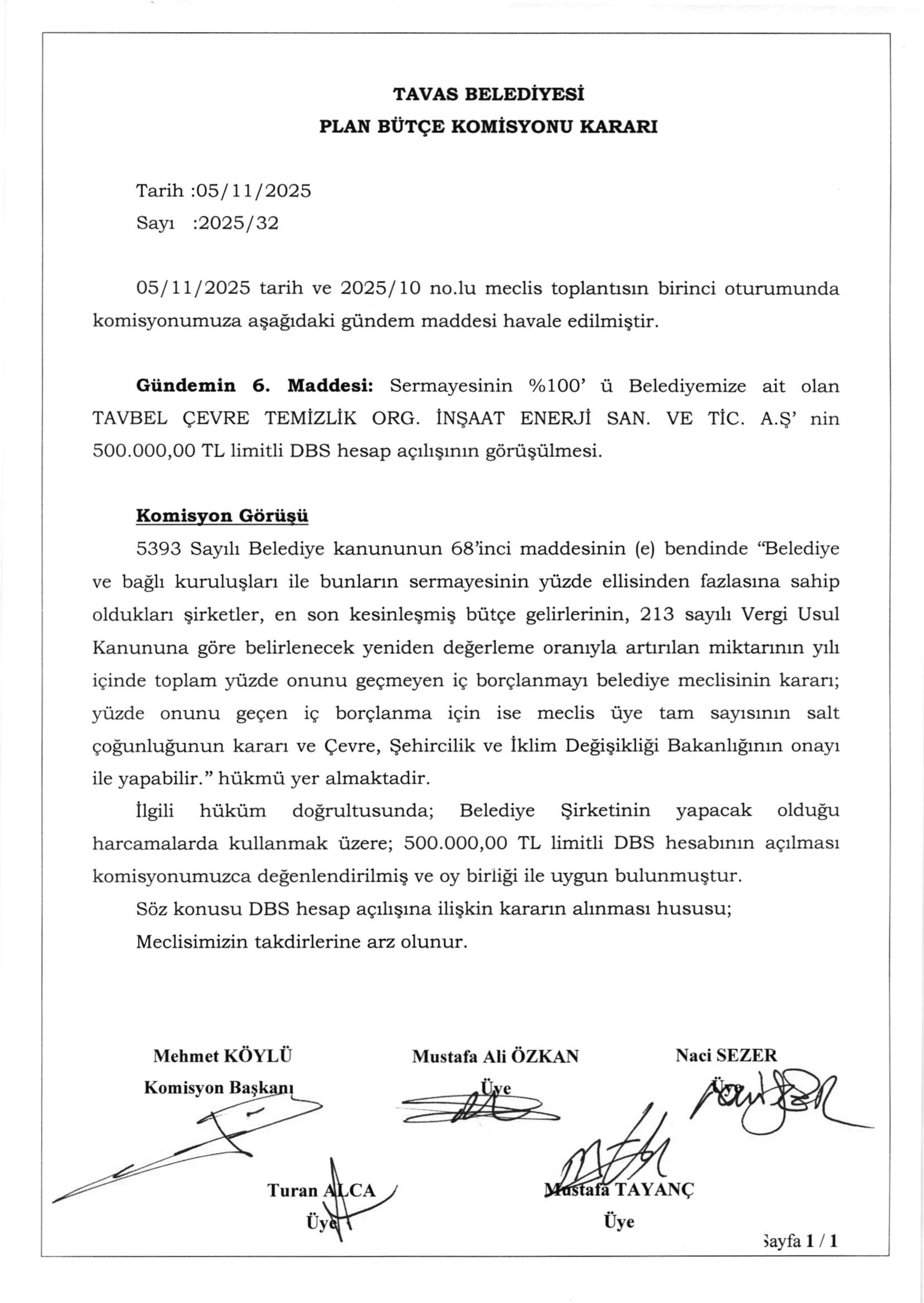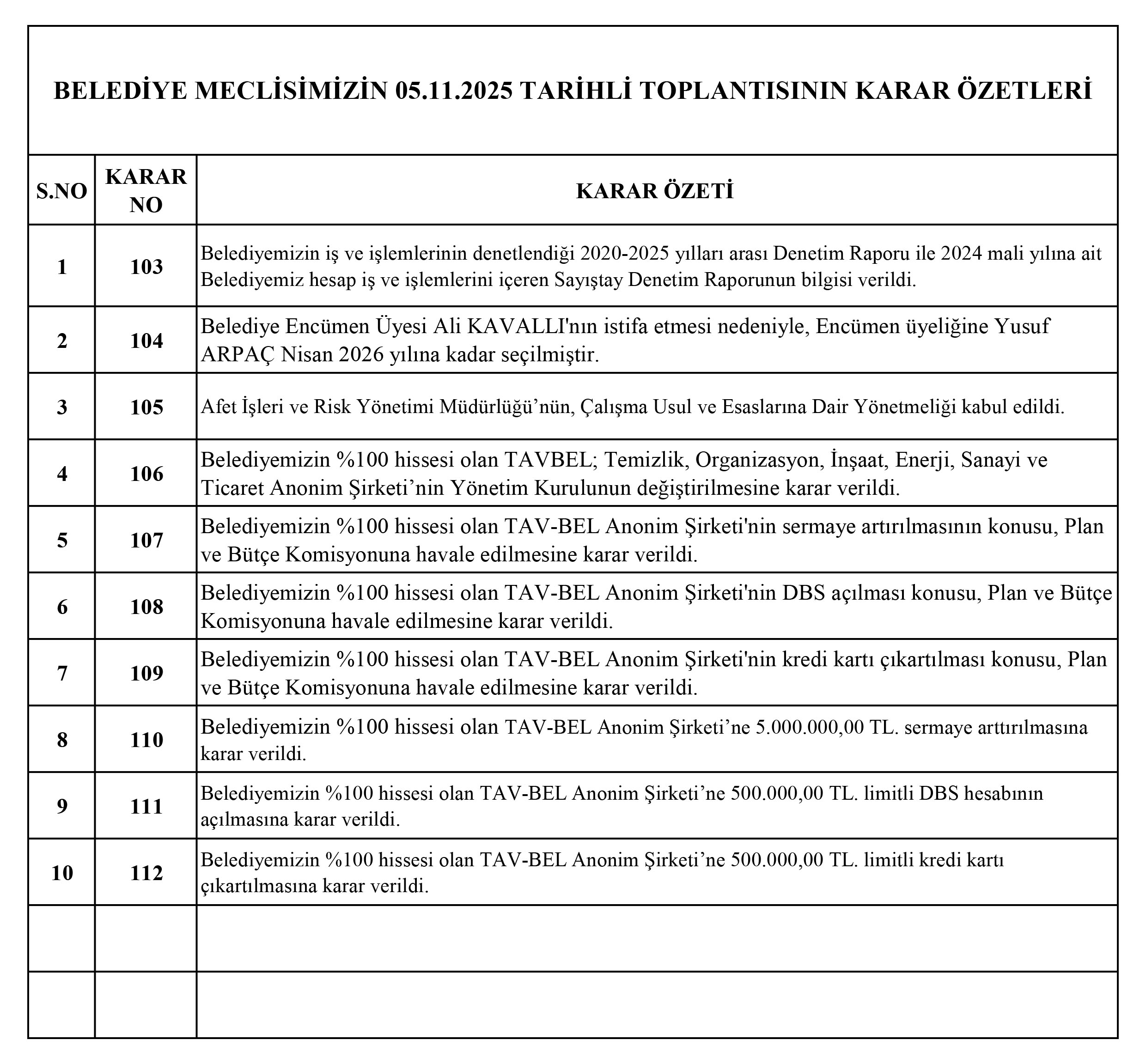 / BELEDİYE MECLİSİMİZİN 05.11.2025 TARİHLİ 2025-10 NOLU TOPLANTISININ KARAR ÖZETLERİ VE İMAR İLE PLAN VE BÜTÇE KOMİSYON RAPORU