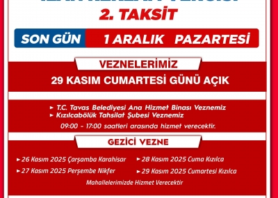 / EMLAK VERGİSİ 2. TAKSİT (KASIM AYI) SON GÜN 1 ARALIK 2025 PAZARTESİ