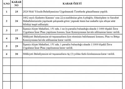BELEDİYE MECLİSİMİZİN 07.01.2026-08.01.2026 TARİHLİ ...