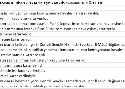 2015 Yılı Meclis Karar Özetleri