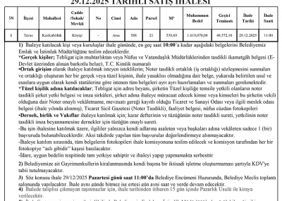 / 29.12.2025 TARİHLİ ARSA SATIŞ İHALESİ