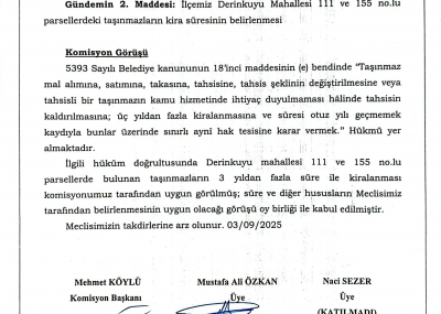 BELEDİYE MECLİSİMİZİN 03.09.2025 TARİHLİ 2025-8 NOLU TOPLANTISININ KARAR ÖZETLERİ VE İMAR İLE PLAN VE BÜTÇE KOMİSYON RAPORU