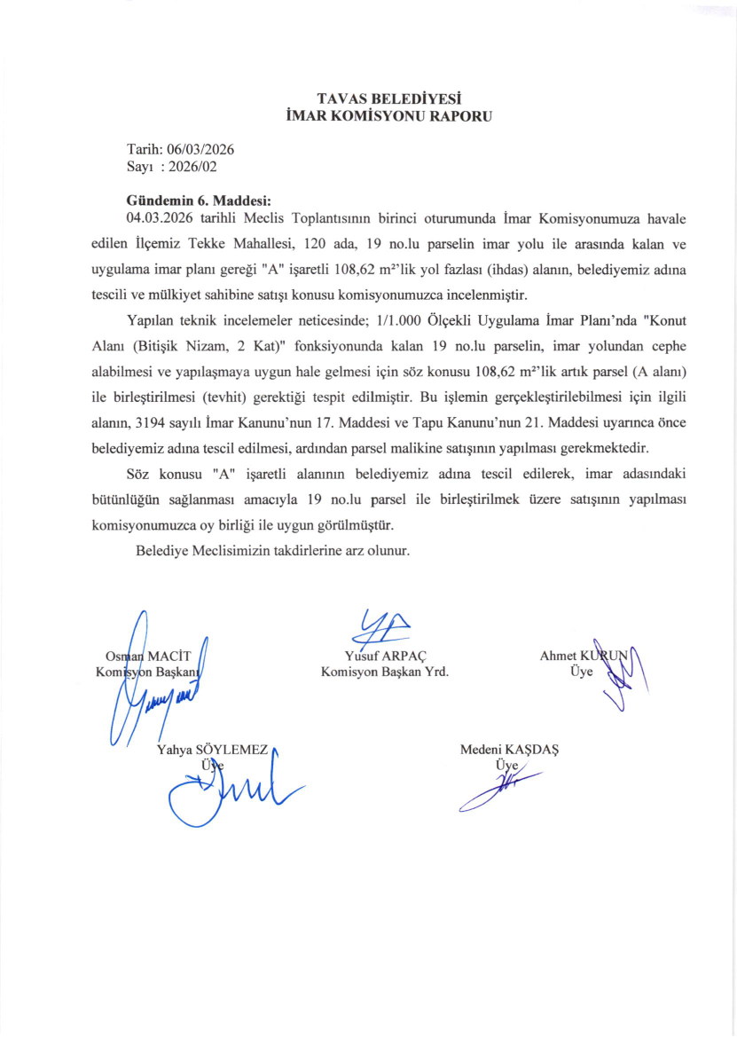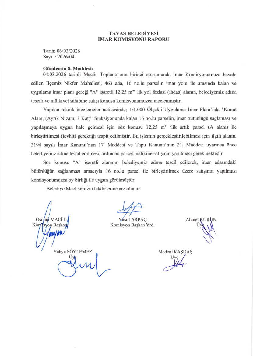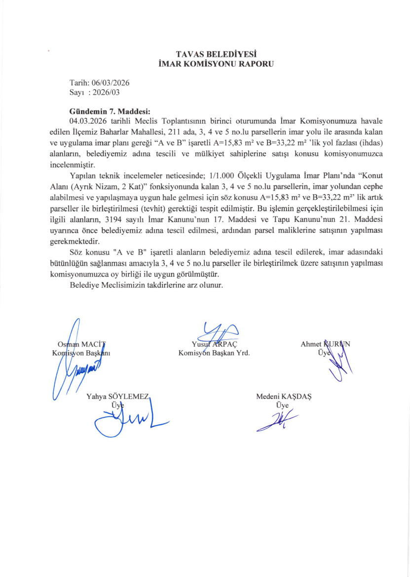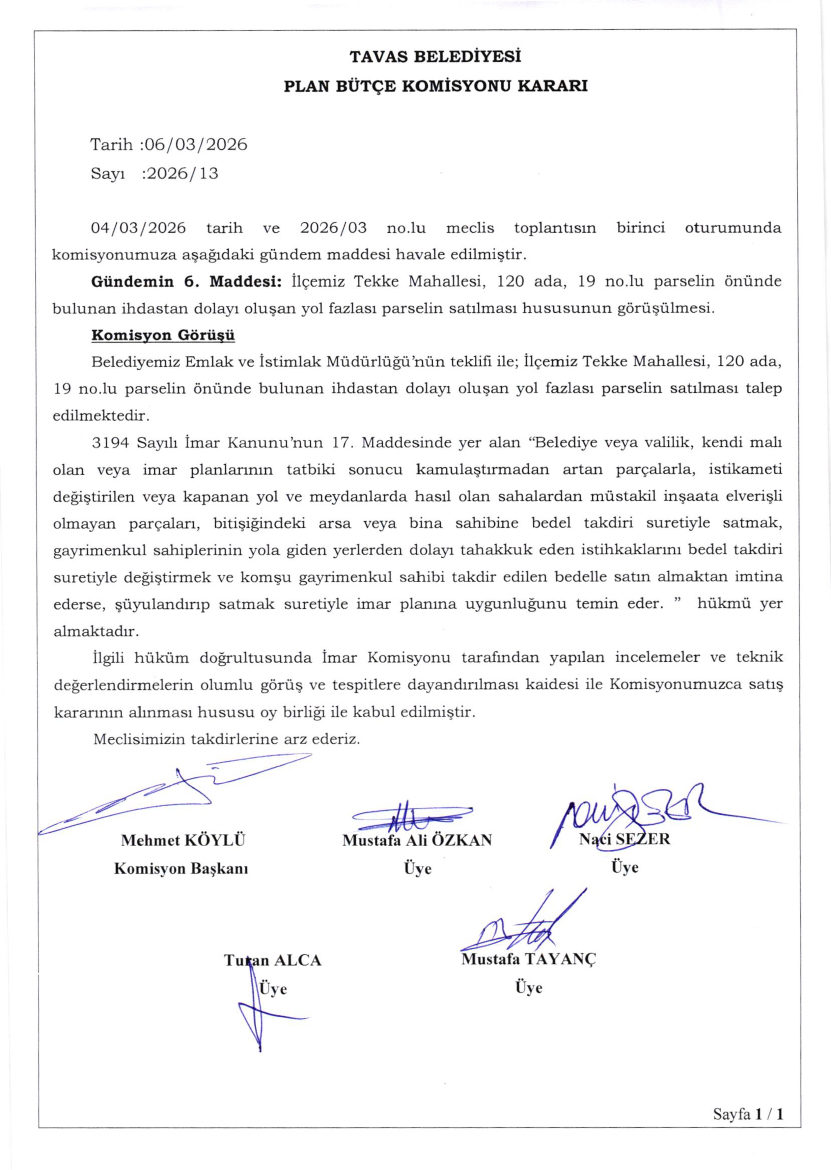 / BELEDİYE MECLİSİMİZİN 04.03.2026-06.03.2026 TARİHLİ 2026-03 NOLU TOPLANTISININ KARAR ÖZETLERİ VE İMAR İLE PLAN VE BÜTÇE KOMİSYON RAPORU