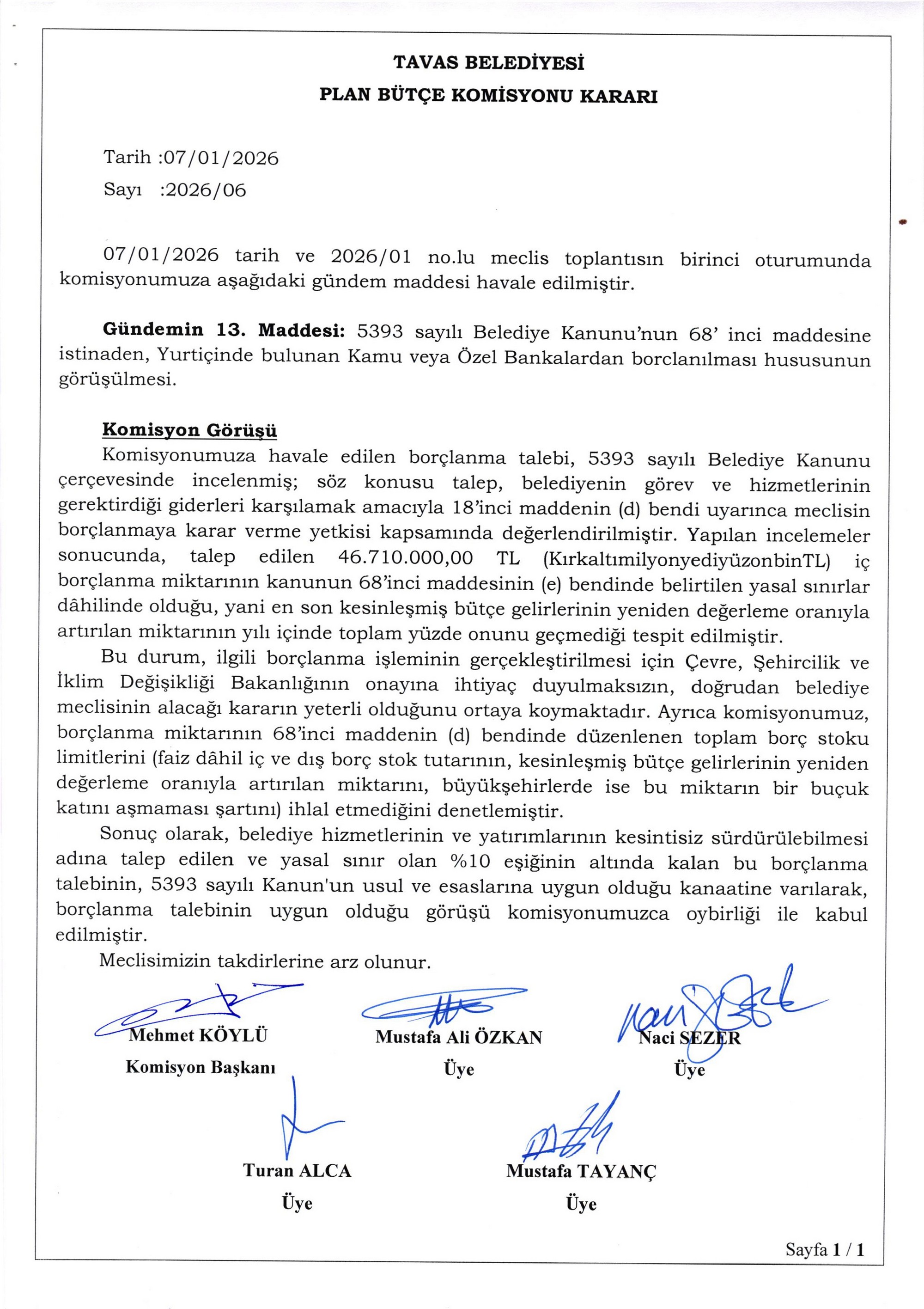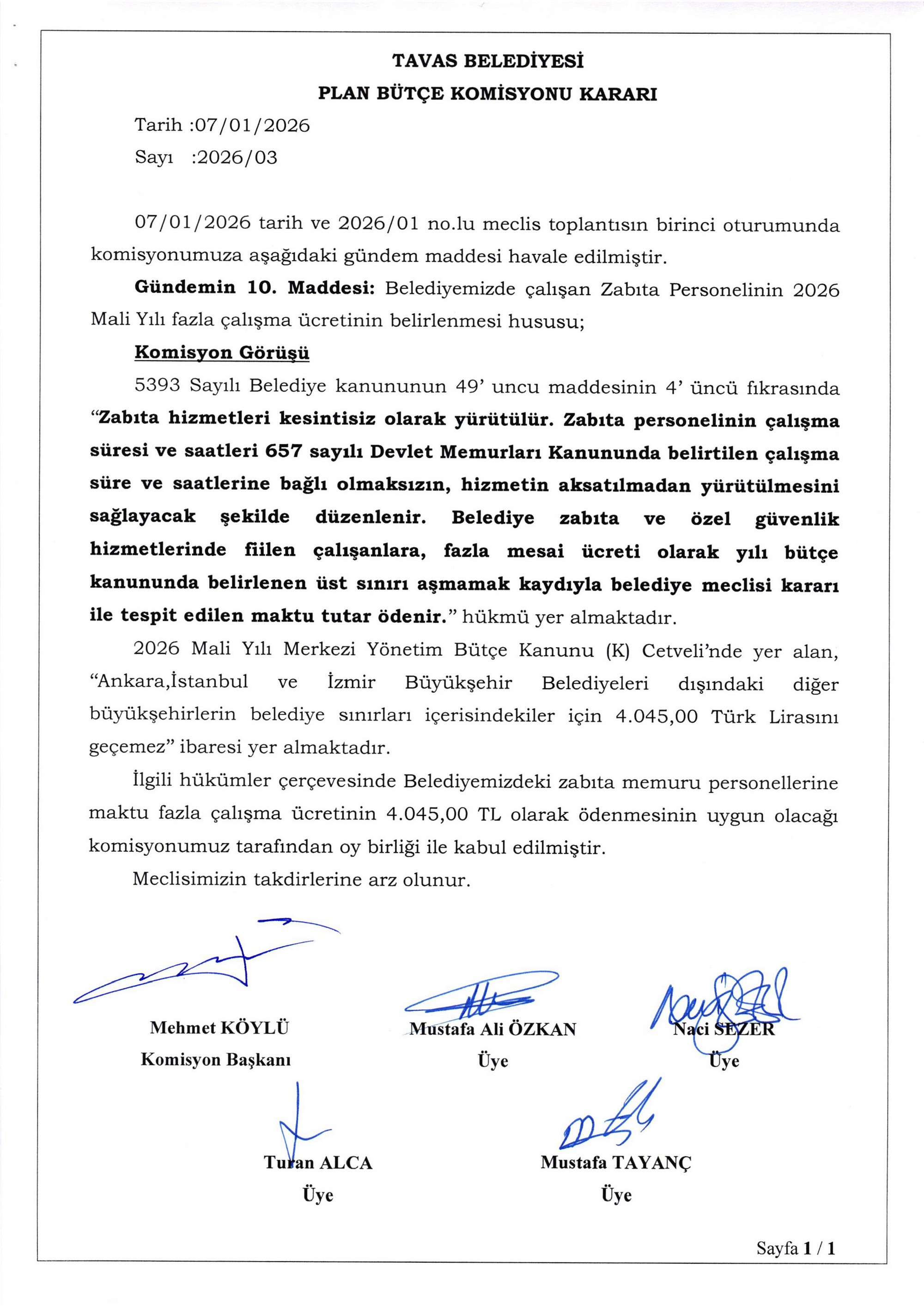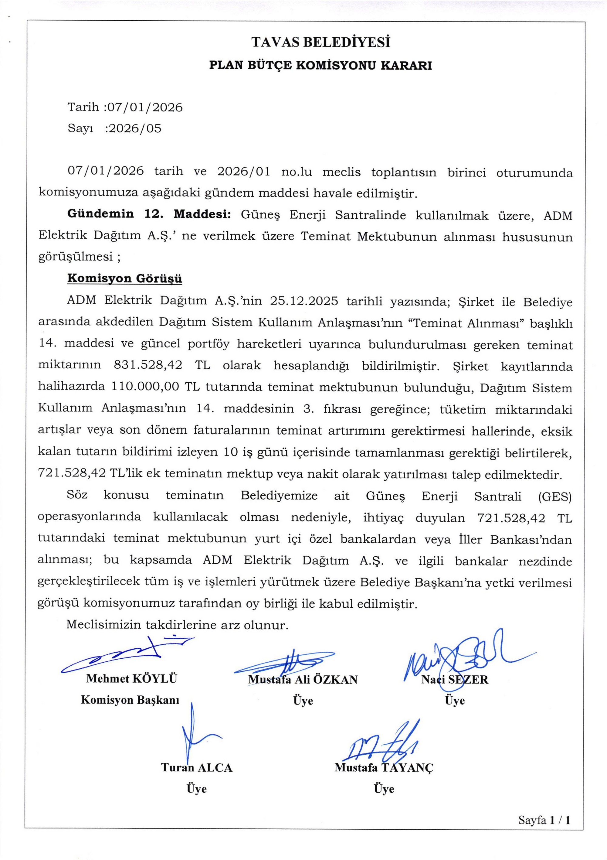 / BELEDİYE MECLİSİMİZİN 07.01.2026-08.01.2026 TARİHLİ 2026-01 NOLU TOPLANTISININ KARAR ÖZETLERİ VE İMAR İLE PLAN VE BÜTÇE KOMİSYON RAPORU