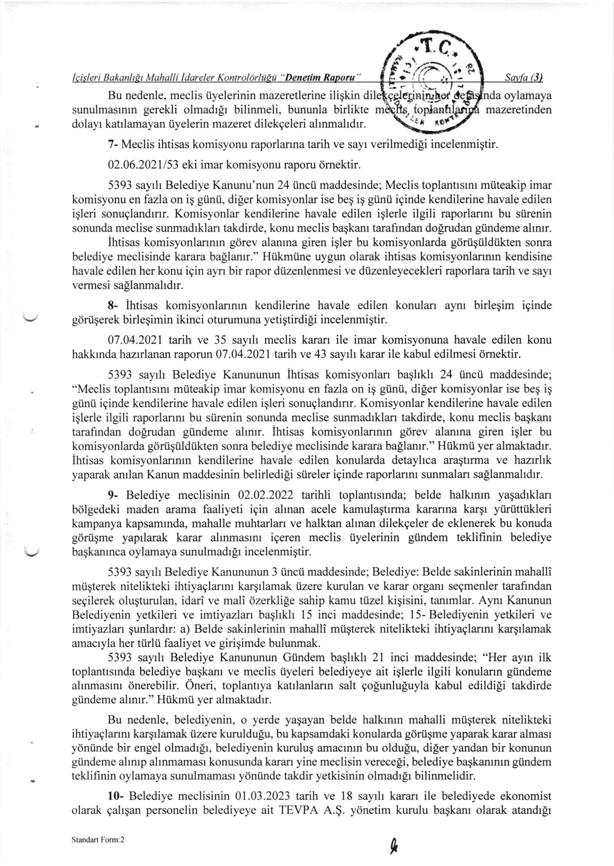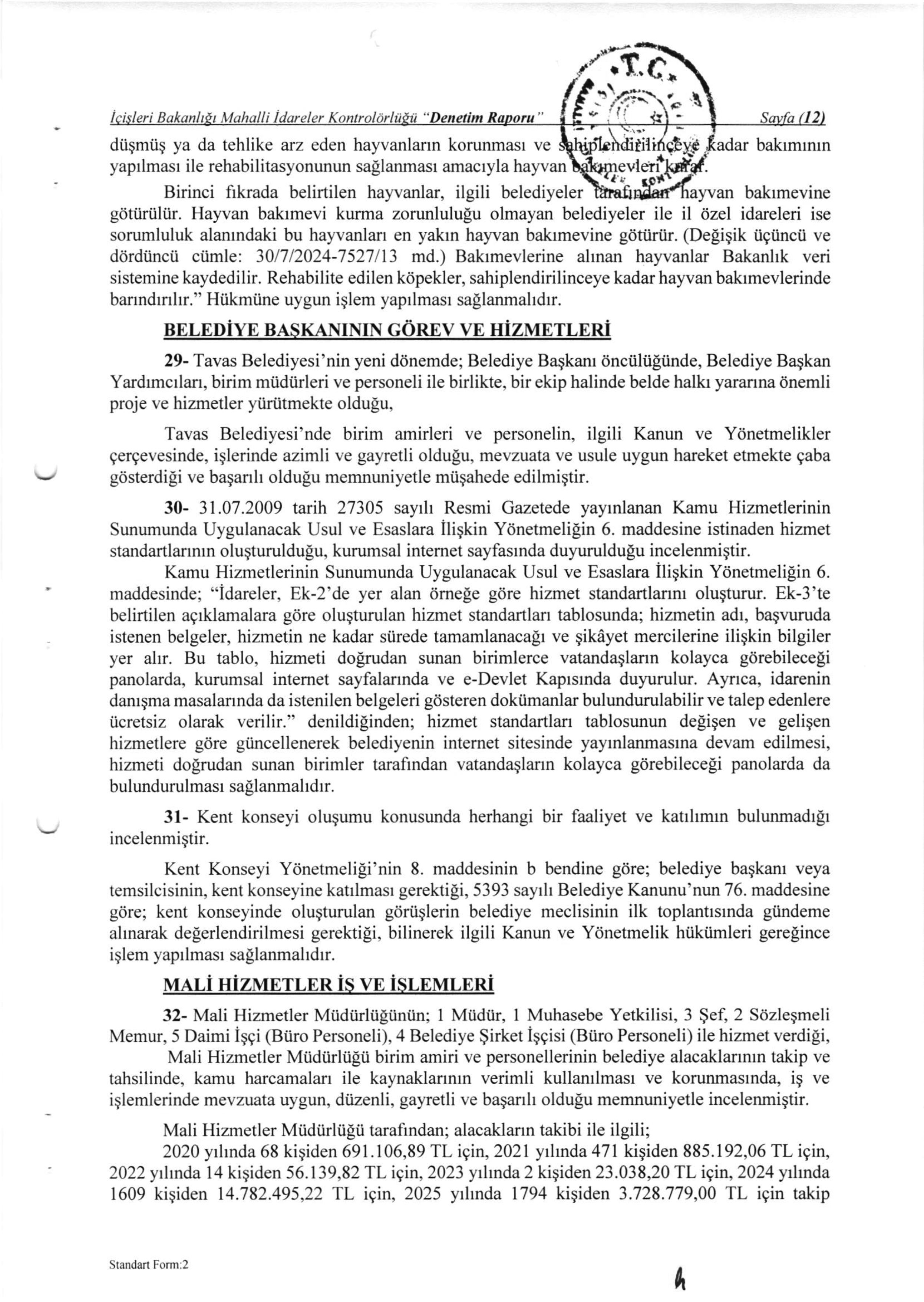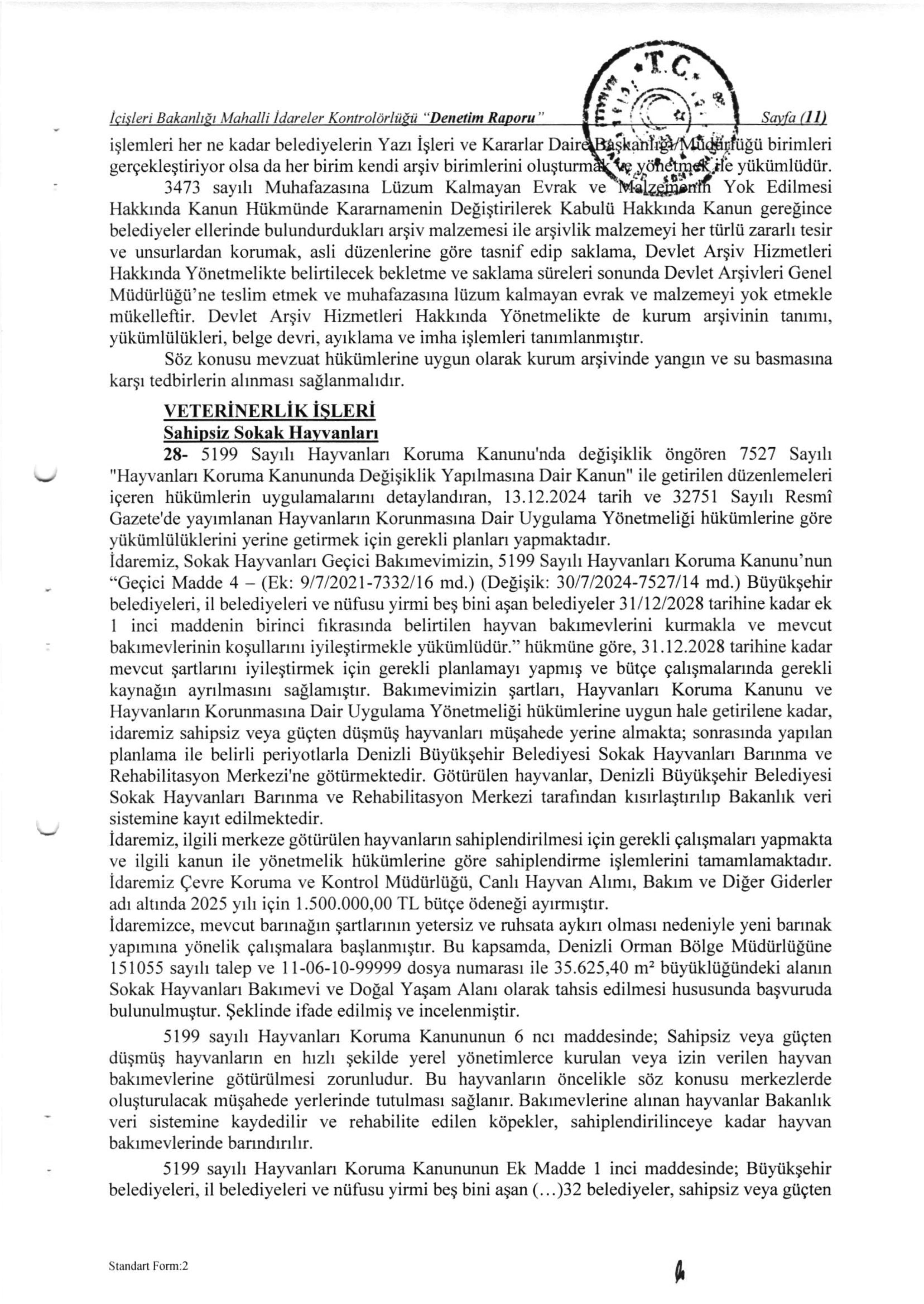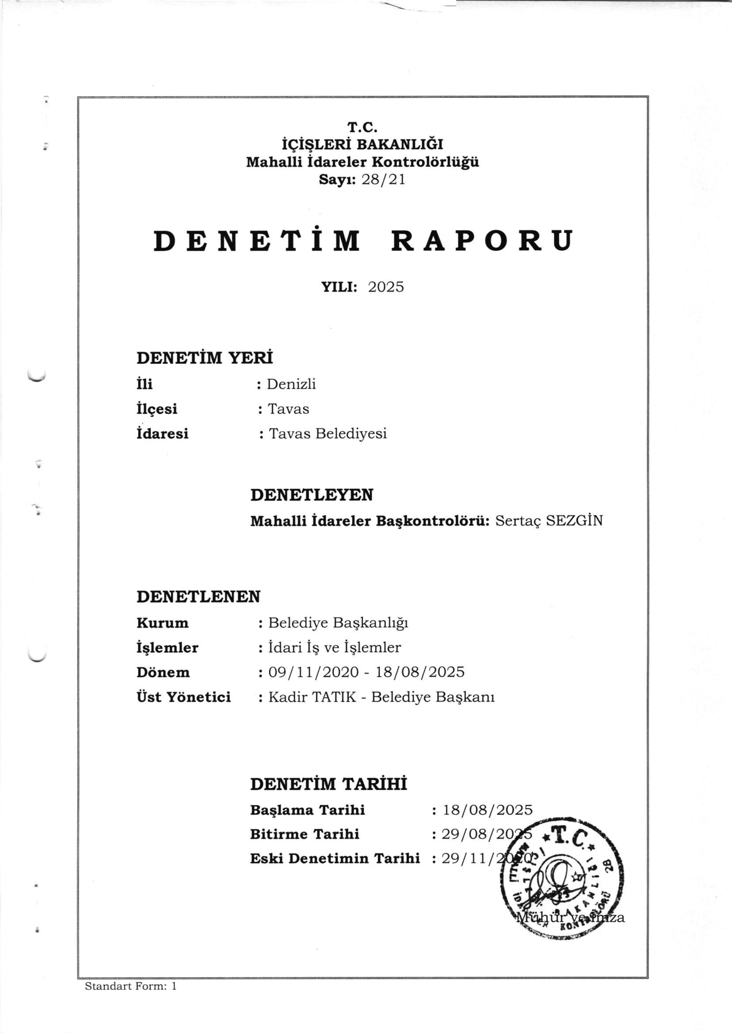 / T.C. İÇİŞLERİ BAKANLIĞI MAHALLİ İDARELER KONTROLÖRLÜĞÜ 2025 YILI 28/21 SAYILI DENETİM RAPORU
