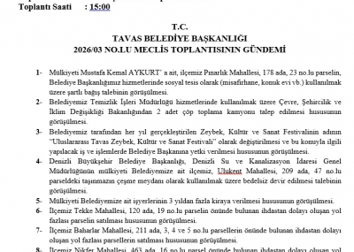 / T.C. TAVAS BELEDİYE BAŞKANLIĞI 2026/03 NOLU MECLİS TOPLANTISININ GÜNDEMİ